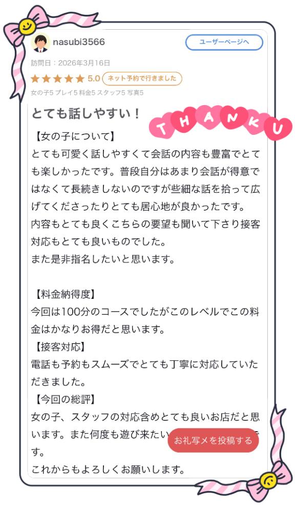 昨日のお礼日記(15:10~100分のお兄様へ💌🧸)